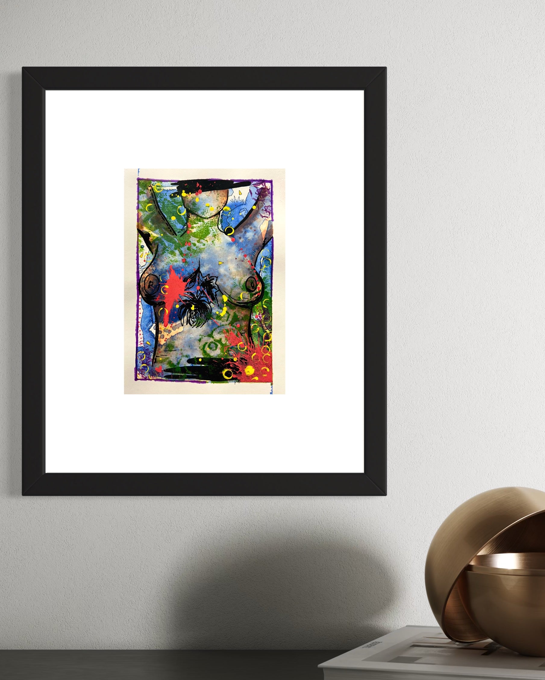 Between abstraction and sensuality, this piece captures the raw energy of the body and emotions. Every splash of color, every trace tells a story — a breath, a movement, a living vibration. Shades of blue, red, and gold merge to reveal the strength and softness of the feminine. 💋